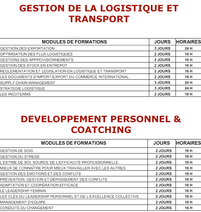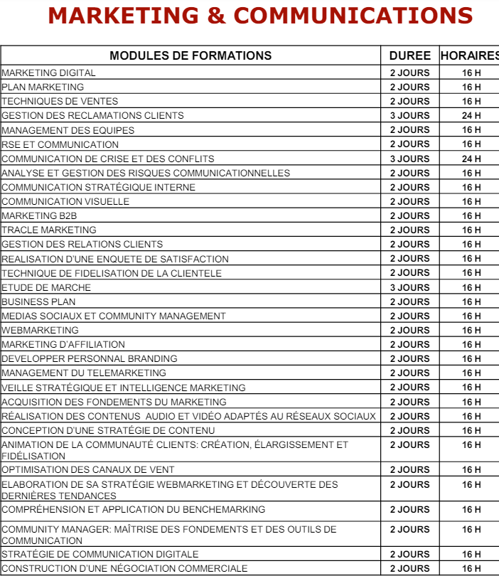 CATALOGUE DE FORMATIONS